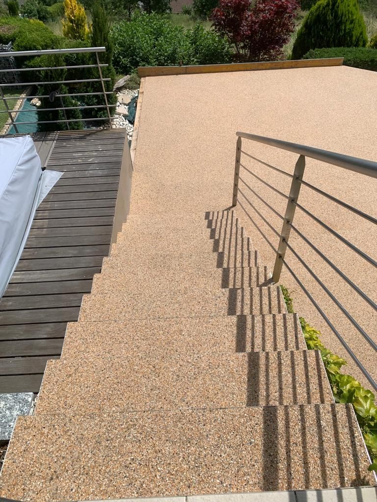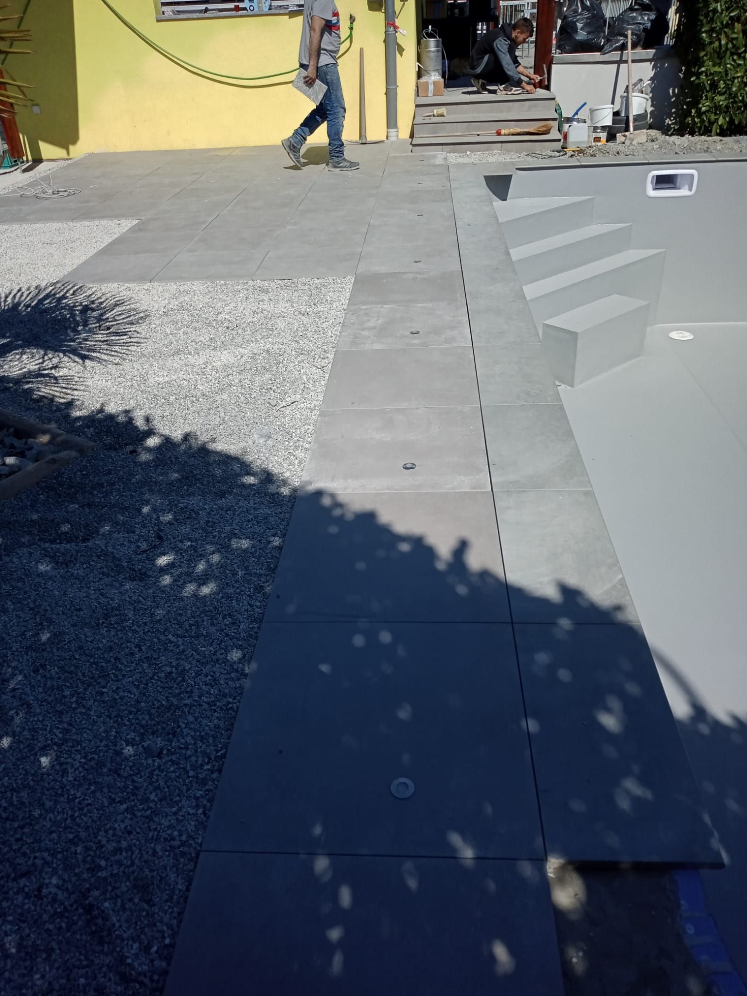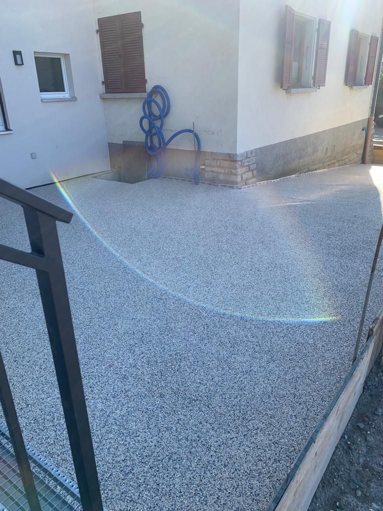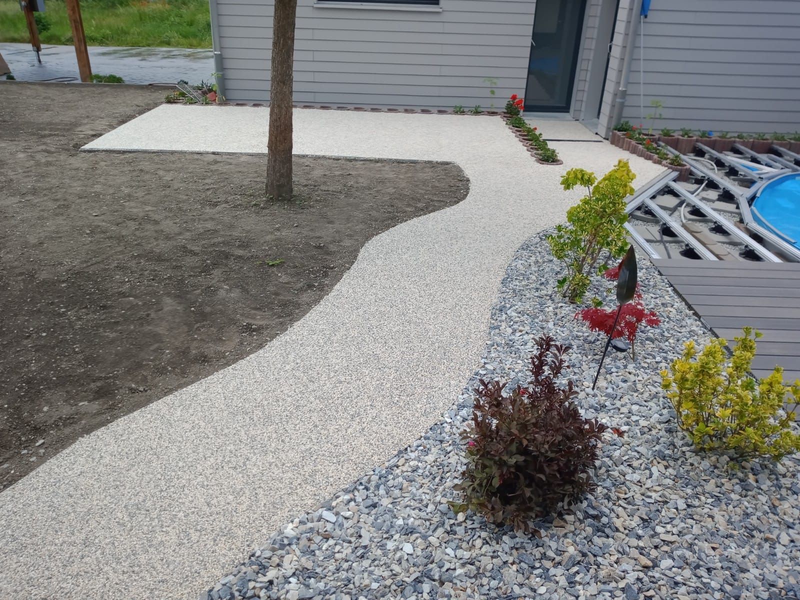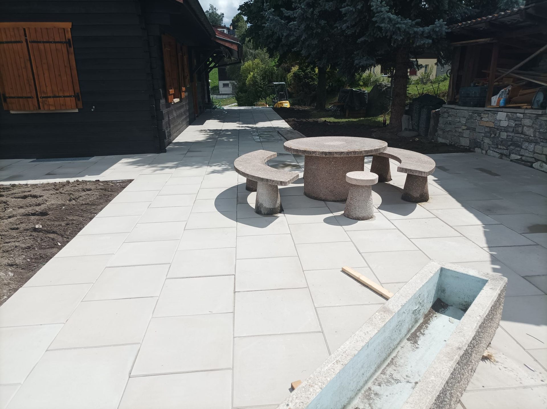 - Terrasses : Création de terrasses en pierres naturelles, bois, dalles ou gravier-époxy, alliant fonctionnalité et élégance.