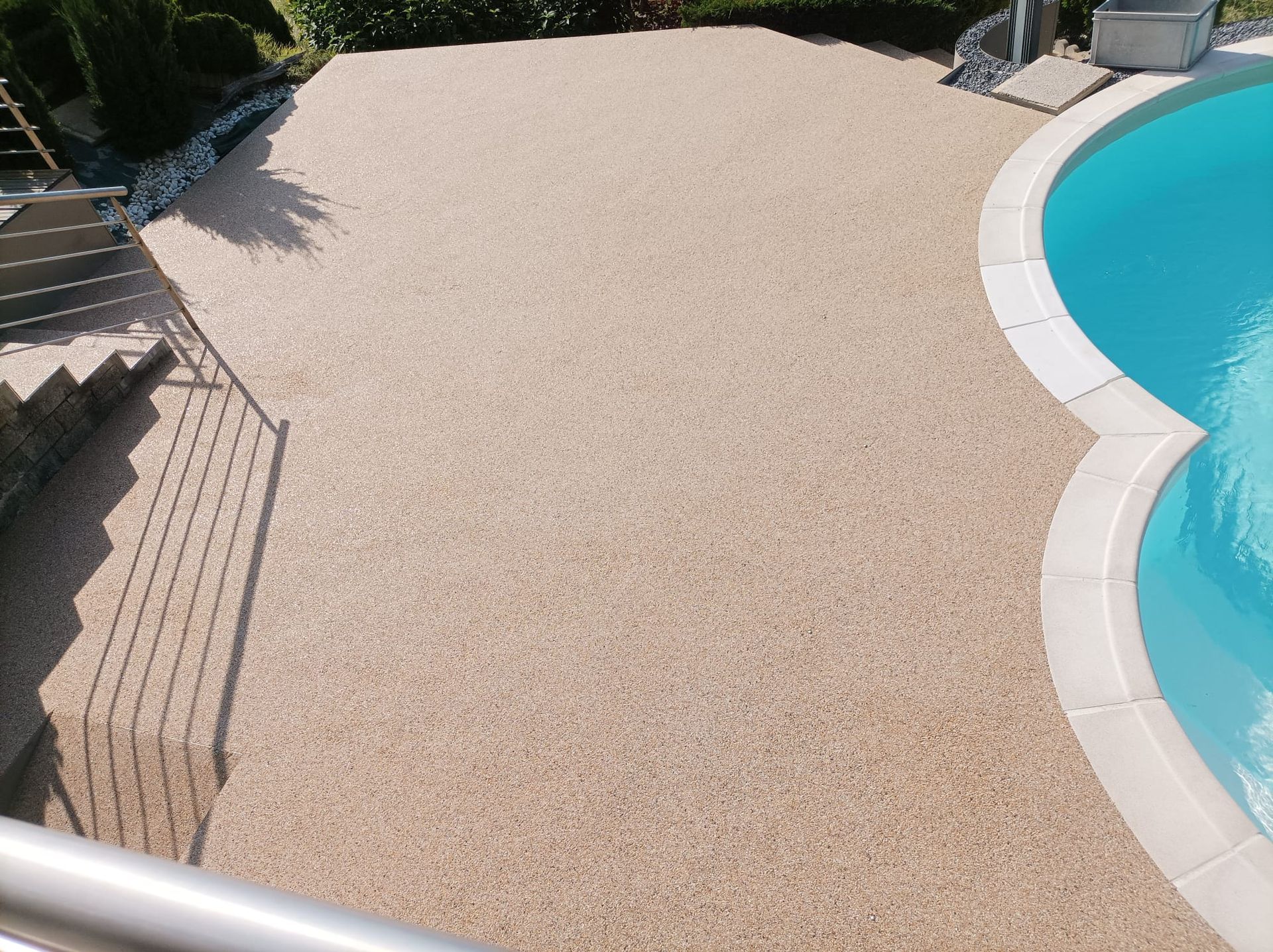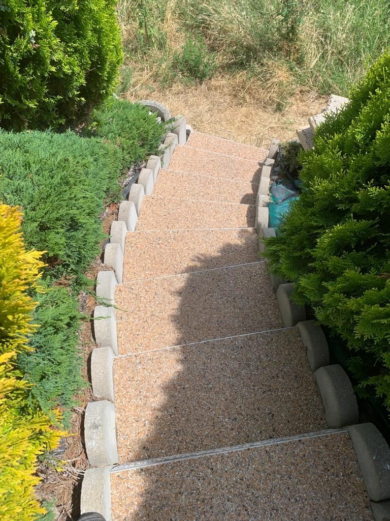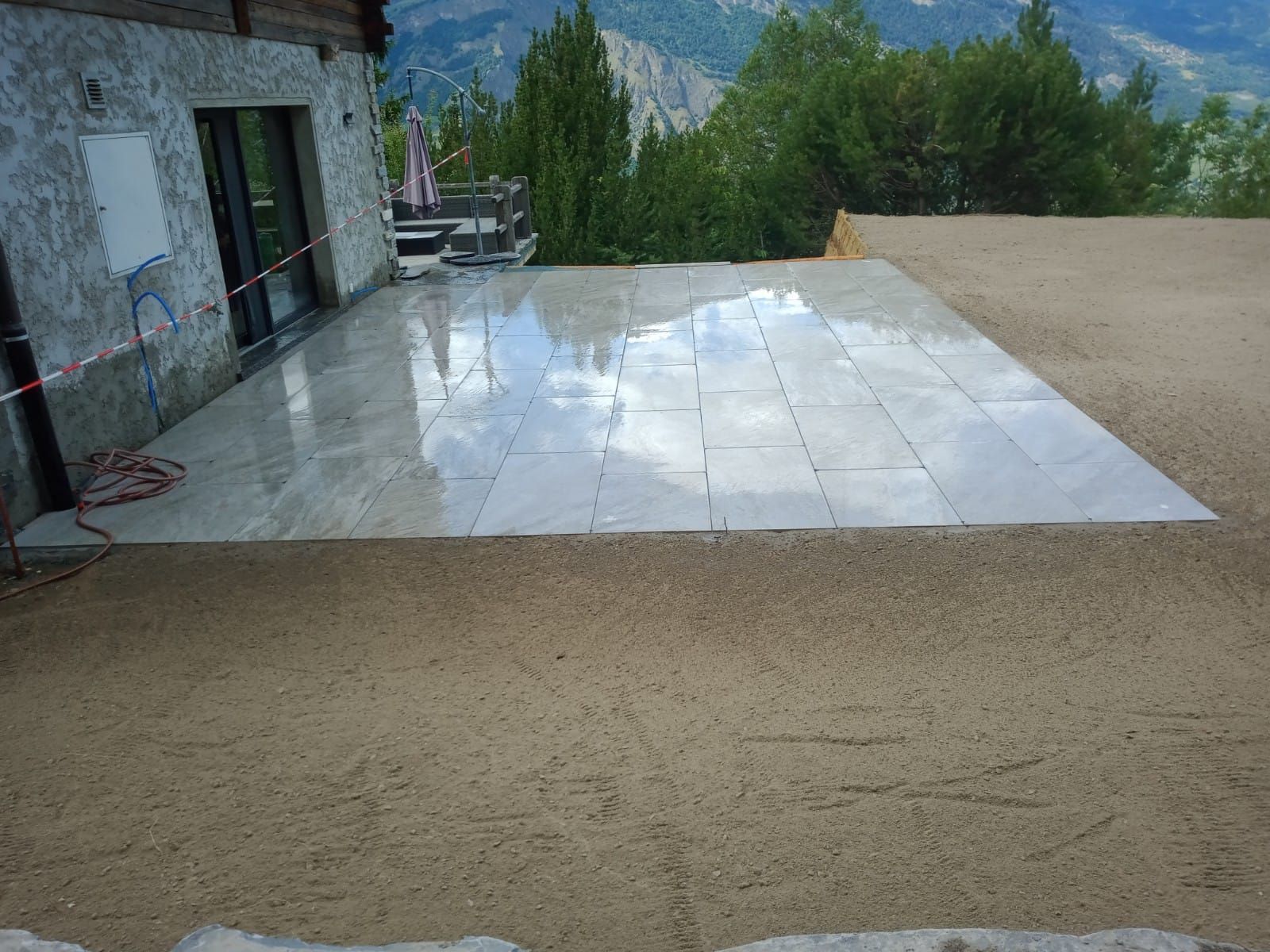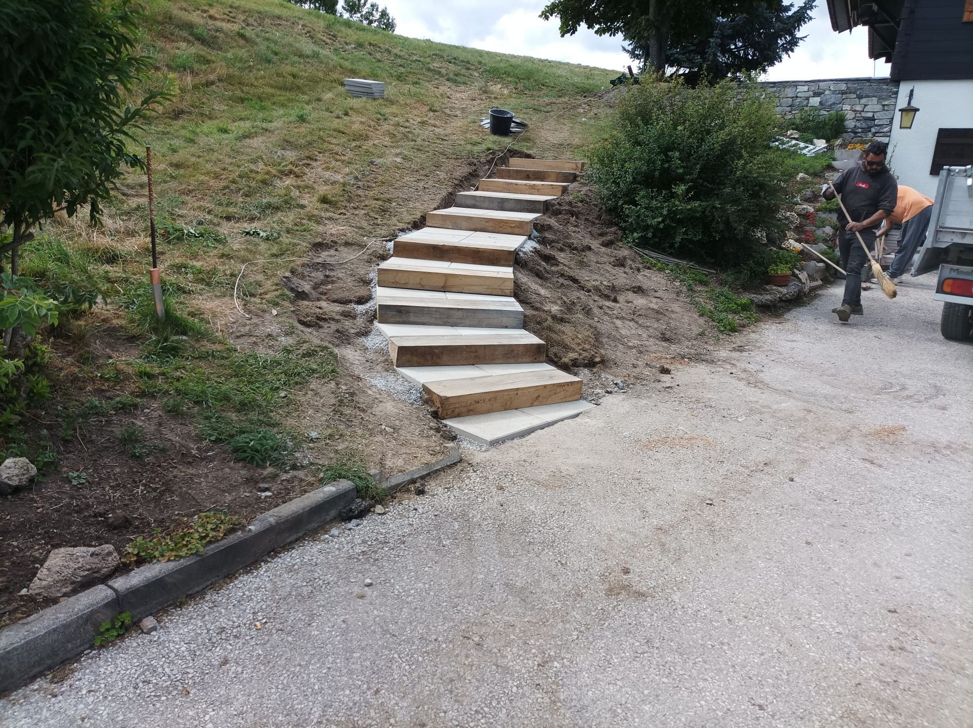 - Terrasses : Création de terrasses en pierres naturelles, bois, dalles ou gravier-époxy, alliant fonctionnalité et élégance.