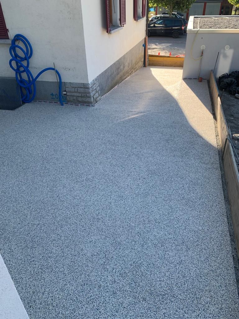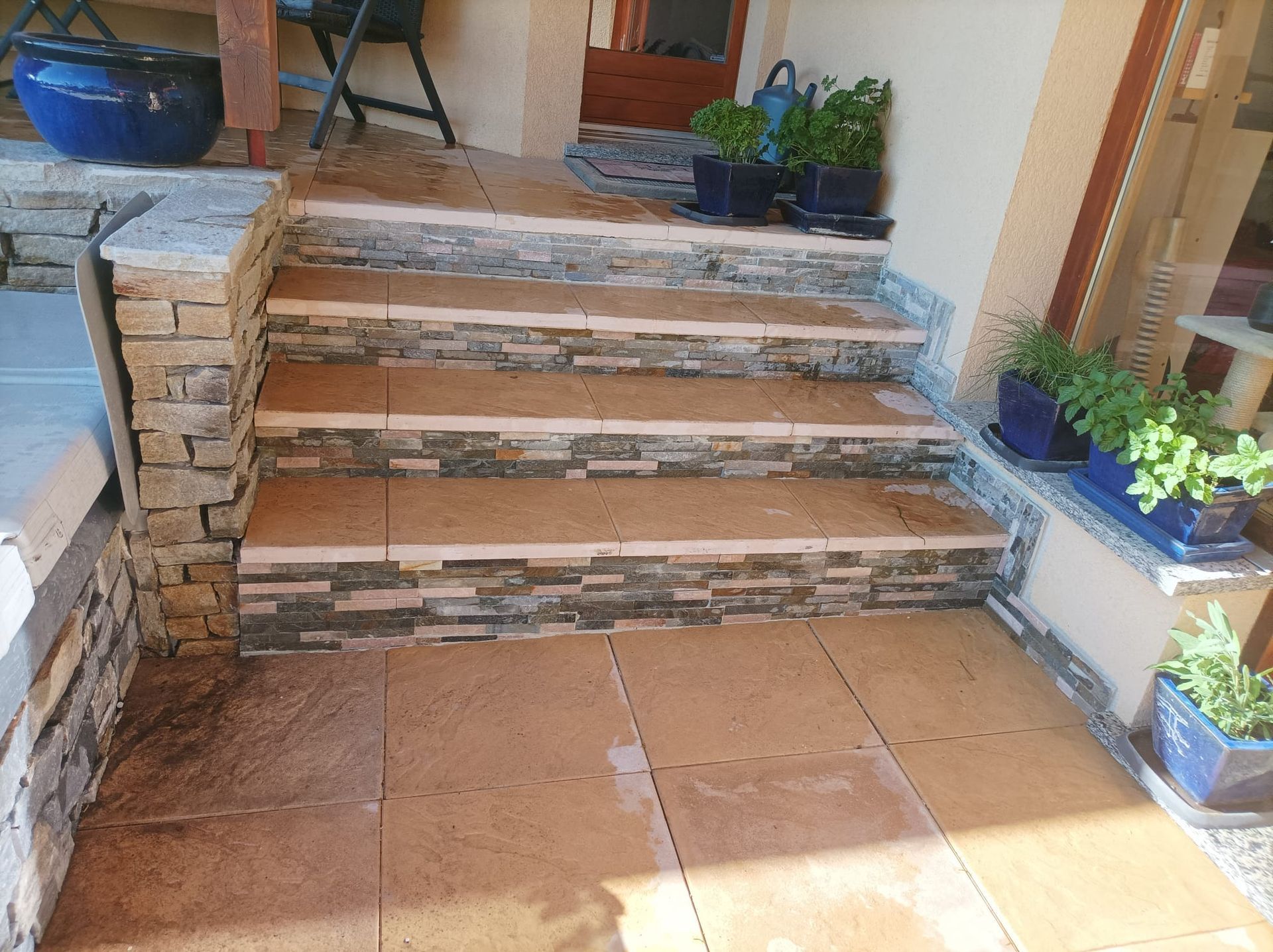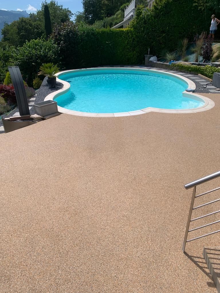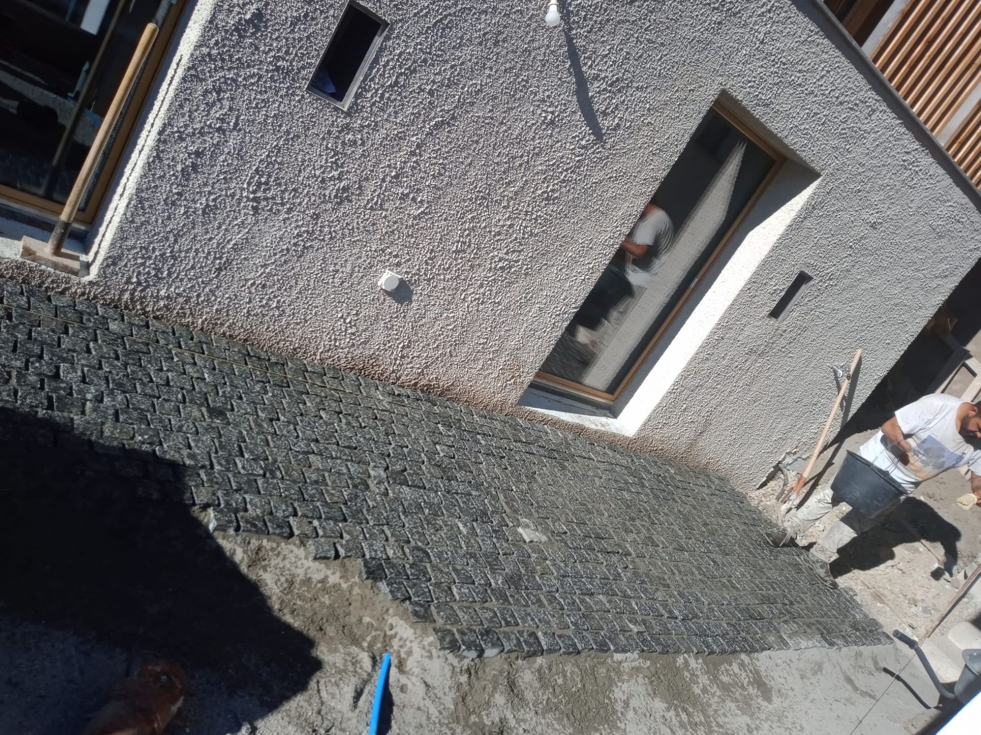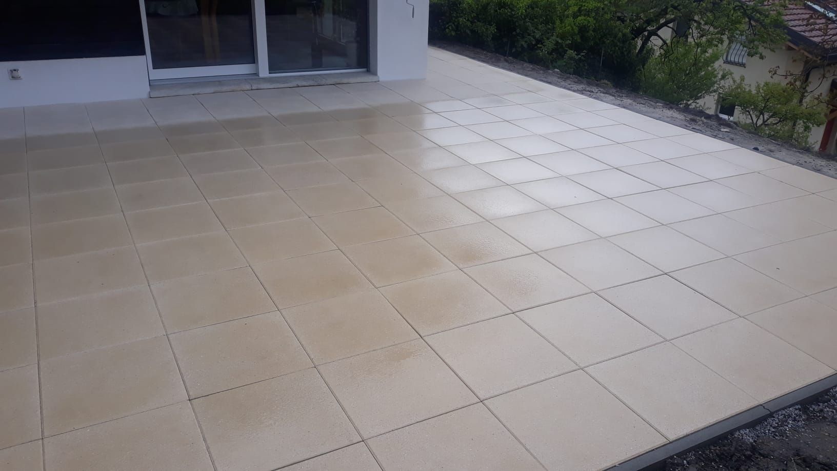 - Terrasses : Création de terrasses en pierres naturelles, bois, dalles ou gravier-époxy, alliant fonctionnalité et élégance.