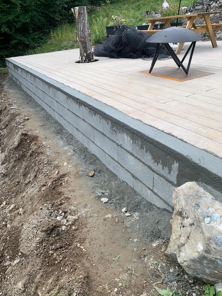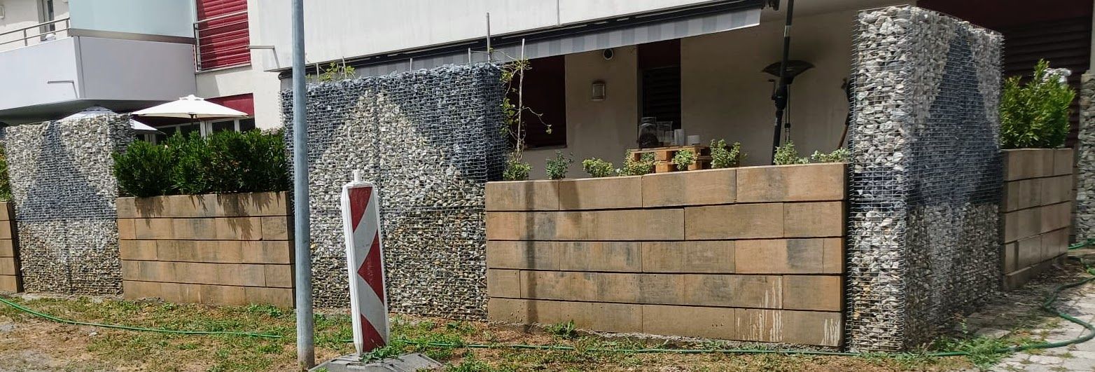 - Petites maçonneries : Construction de murs en pierres, béton, gabions, terra-muro et consolidation de talus pour des structures solides et esthétiques.